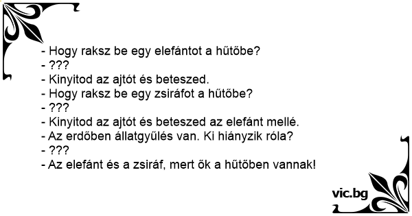 - Az elefánt és a zsiráf, mert ők a hűtőben vannak!