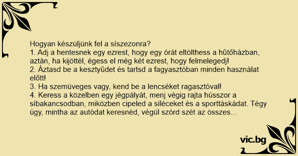 1. Adj a hentesnek egy ezrest, hogy egy órát eltölthess a hűtőházban, aztán, ha kijöttél, égess el még két ezrest, hogy felmelegedj!