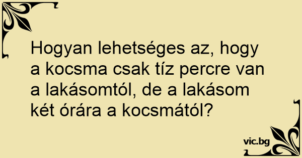 Hogyan lehetséges az, hogy a kocsma csak tíz percre van a lakásomtól, de a lakásom két órára a kocsmától?