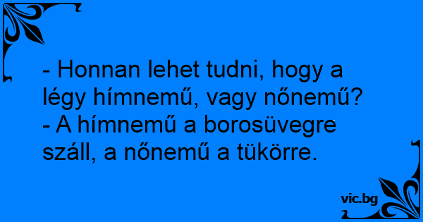 - A hímnemű a borosüvegre száll, a nőnemű a tükörre.