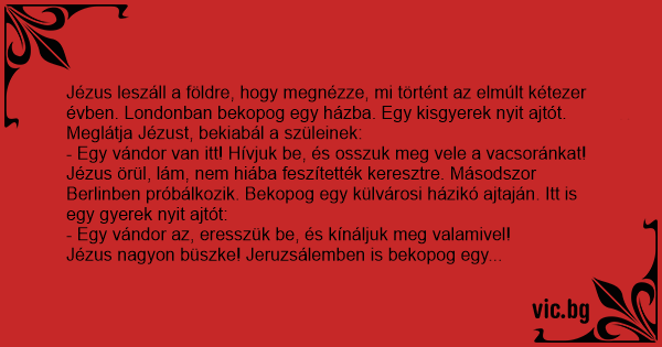 Jézus nagyon büszke! Jeruzsálemben is bekopog egy házba. Öreg kaftános szakállas ember nyit ajtót, majd hátrakiált: