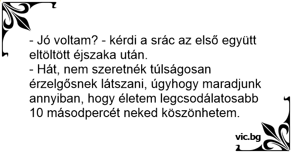 - Jó voltam? - kérdi a srác az első együtt eltöltött éjszaka után.