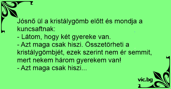 - Azt maga csak hiszi. Összetörheti a kristálygömbjét, ezek szerint nem ér semmit, mert nekem három gyerekem van!