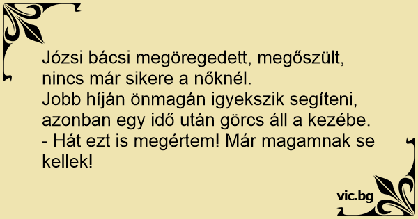 Józsi bácsi megöregedett, megőszült, nincs már sikere a nőknél.