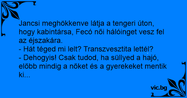 - Dehogyis! Csak tudod, ha süllyed a hajó, előbb mindig a nőket és a gyerekeket mentik ki...