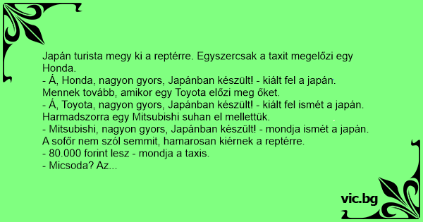 - Á, Honda, nagyon gyors, Japánban készült! - kiált fel a japán.