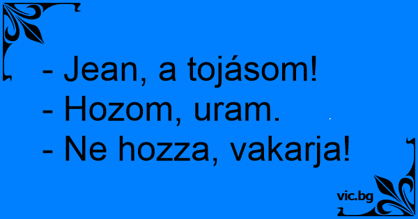 - Jean, a tojásom! - Hozom,...