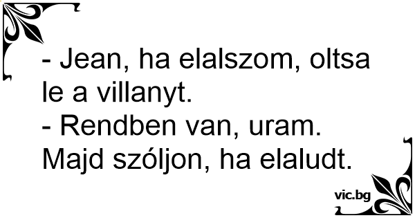 - Jean, ha elalszom, oltsa le a villanyt.