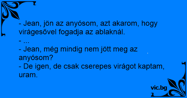 - Jean, jön az anyósom, azt akarom, hogy virágesővel fogadja az ablaknál.