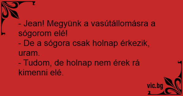 - Jean! Megyünk a vasútállomásra a sógorom elé!