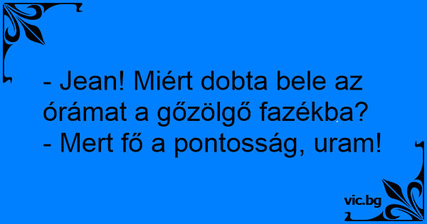 - Jean! Miért dobta bele az órámat a gőzölgő fazékba?