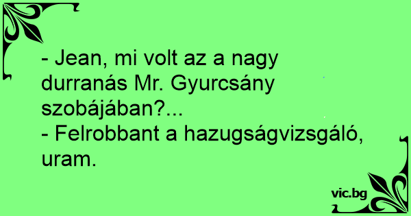 - Jean, mi volt az a nagy durranás Mr. Gyurcsány szobájában?...