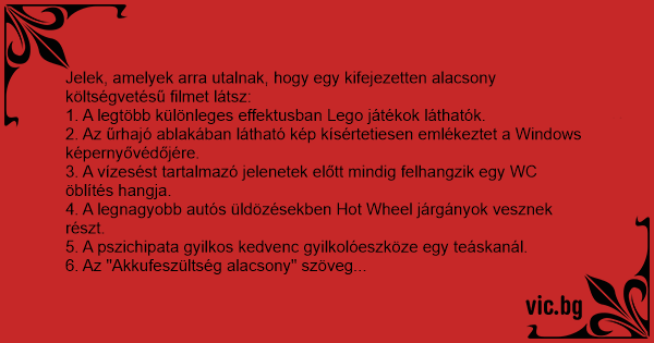 Jelek, amelyek arra utalnak, hogy egy kifejezetten alacsony költségvetésű filmet látsz: