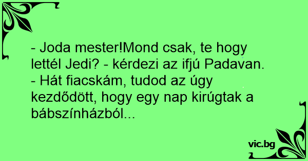 - Joda mester!Mond csak, te hogy lettél Jedi? - kérdezi az ifjú Padavan.