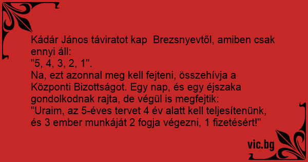 "Uraim, az 5-éves tervet 4 év alatt kell teljesítenünk, és 3 ember munkáját 2 fogja végezni, 1 fizetésért!"