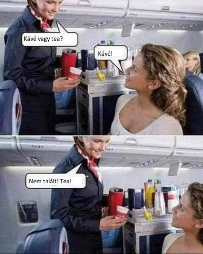 - Kávé Väy tea ?<br />- Kávé.<br />- Nem talált! Tea