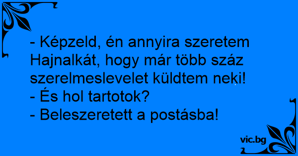 - Képzeld, én annyira szeretem Hajnalkát, hogy már több száz szerelmeslevelet küldtem neki!