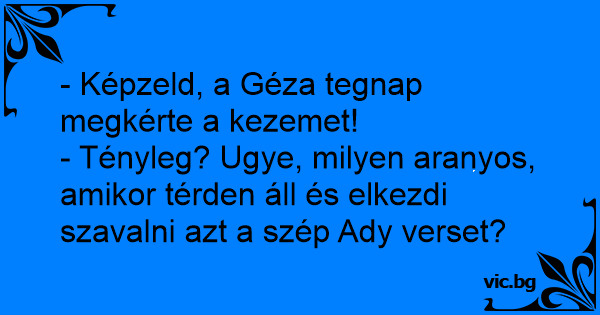 - Képzeld, a Géza tegnap megkérte a kezemet!