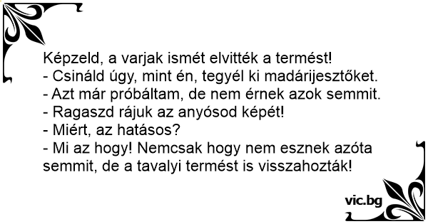 - Mi az hogy! Nemcsak hogy nem esznek azóta semmit, de a tavalyi termést is visszahozták!