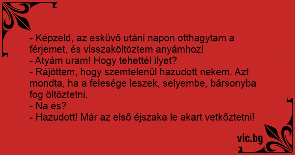 - Képzeld, az esküvő utáni napon otthagytam a férjemet, és visszaköltöztem anyámhoz!