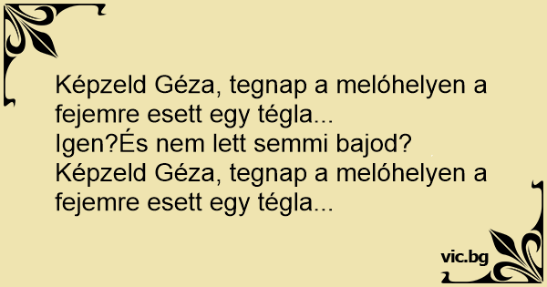 Képzeld Géza, tegnap a melóhelyen a fejemre esett egy tégla...