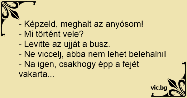 - Képzeld, meghalt az anyósom!