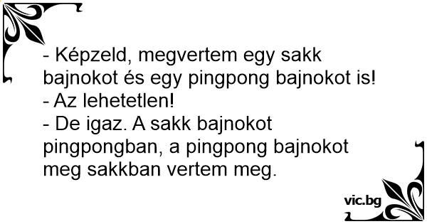 - Képzeld, megvertem egy sakk bajnokot és egy pingpong bajnokot is!