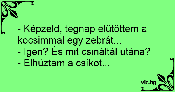 - Képzeld, tegnap elütöttem a kocsimmal egy zebrát...