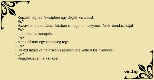 - Képzeld tegnap felcsíptem egy dögös kis cicust.