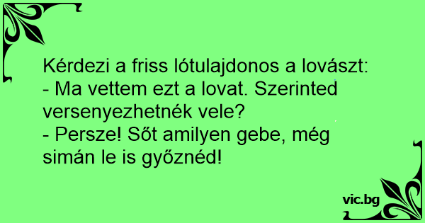 - Ma vettem ezt a lovat. Szerinted versenyezhetnék vele?