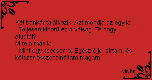 - Teljesen kiborít ez a válság. Te hogy aludtál?