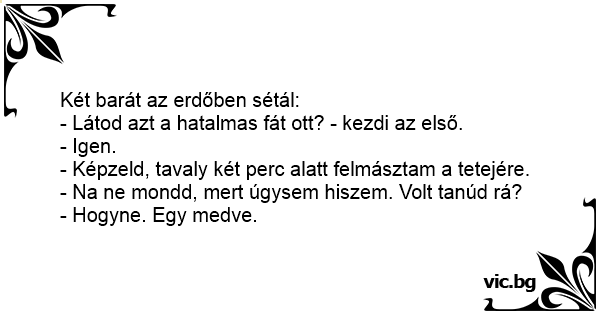 - Látod azt a hatalmas fát ott? - kezdi az első.