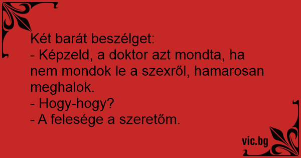 - Képzeld, a doktor azt mondta, ha nem mondok le a szexről, hamarosan meghalok.