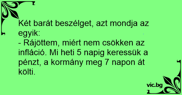 - Rájöttem, miért nem csökken az infláció. Mi heti 5 napig keressük a pénzt, a kormány meg 7 napon át költi.