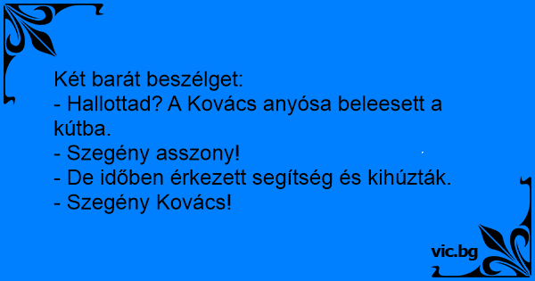 - Hallottad? A Kovács anyósa beleesett a kútba.