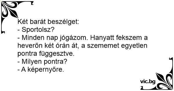 - Minden nap jógázom. Hanyatt fekszem a heverőn két órán át, a szememet egyetlen pontra függesztve.