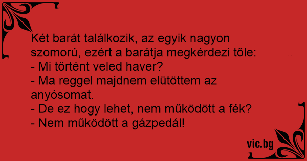 Két barát találkozik, az egyik nagyon szomorú, ezért a barátja megkérdezi tőle: