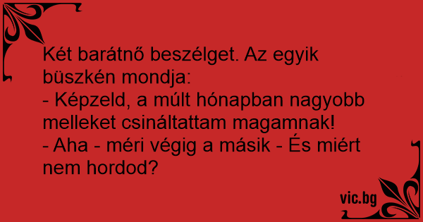 - Képzeld, a múlt hónapban nagyobb melleket csináltattam magamnak!