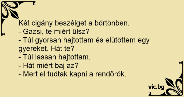 Két cigány beszélget a börtönben.