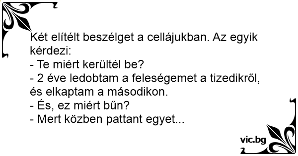 Két elítélt beszélget a cellájukban. Az egyik kérdezi:
