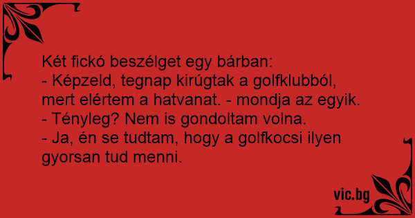 - Képzeld, tegnap kirúgtak a golfklubból, mert elértem a hatvanat. - mondja az egyik.