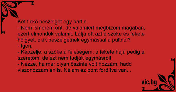 - Képzelje, a szőke a feleségem, a fekete hajú pedig a szeretőm, de ezt nem tudják egymásról!