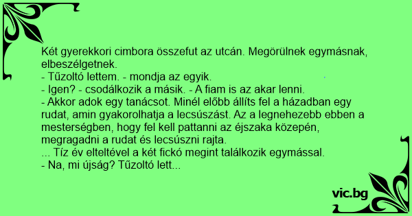 - Igen? - csodálkozik a másik. - A fiam is az akar lenni.