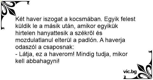 - Látja, ez a haverom! Mindig tudja, mikor kell abbahagyni!