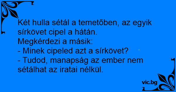Két hulla sétál a temetőben, az egyik sírkövet cipel a hátán.
