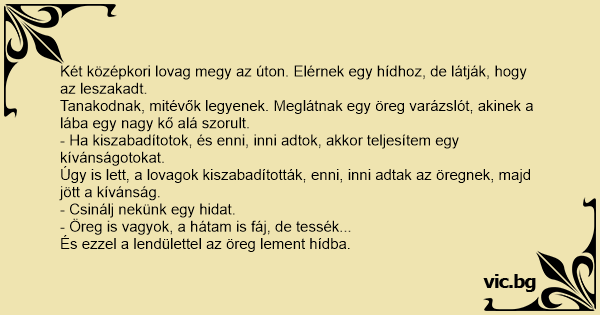 Úgy is lett, a lovagok kiszabadították, enni, inni adtak az öregnek, majd jött a kívánság.