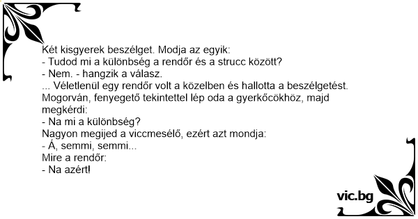 ... Véletlenül egy rendőr volt a közelben és hallotta a beszélgetést. Mogorván, fenyegető tekintettel lép oda a gyerkőcökhöz, majd megkérdi: