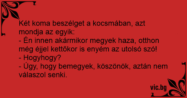 Két koma beszélget a kocsmában, azt mondja az egyik: