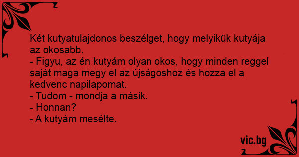 - Figyu, az én kutyám olyan okos, hogy minden reggel saját maga megy el az újságoshoz és hozza el a kedvenc napilapomat.