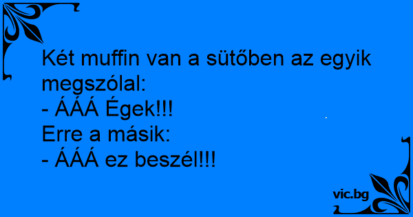 Det var en gång två muffins i en ugn. Den första muffinsen sa: - Ojj, Vad hett det är här inne. Den andra muffinsen sa: - Hjääälp, en talande muffins!!!